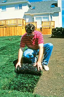Over-lapped pieces will never properly root, and they?EUR??,,????'?????<???EUR?ll cause bumps in your lawn. Small patches tend to dry out and often die. Take your time in putting down the pieces of sod, and pay attention to details. Stay off the soil as much as possible before you install the sod. Once the sod is rolled out, work on it only when necessary to fit and trim it, then stay off! As soon as possible, soak the newly installed sod so that the soil beneath it is sopping wet.