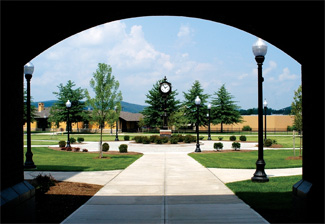 Details from the finials on light posts to the curves of an ornamental bench were all designed to assimilate within the existing historical setting. ?EUR??,,????'??Every piece, every decision that you make on a major project like this makes its own impact,?EUR??,,????'?? asserts Drake. ?EUR??,,????'??The choice of lighting was very apr????+s pro to the style of the adjacent buildings, and the age and style of the city. The fixtures enhance the walkways and green space that will become the focal point of the campus for years to come. If you put the wrong light fixture in, it would detract from the city–with these, you almost don?EUR??,,????'???t even see them, and they just become part of the ambience.?EUR??,,????'??