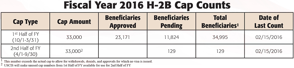 Among the provisions affecting the H-2B program that were included in this year's omnibus spending bill were: returning workers that have held H-2B status in the last three years will now be exempt from the annual cap of 66,000 workers allowed into the country; private wage surveys can be used to help determine fair wages; seasonal is now defined as 10 months instead of nine.
