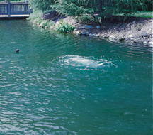 The term "surface aerator" should not be confused with the zone for which an aerator provides aeration. It simply means the location in which such a device is installed i.e., at the surface of a pond or lake, supported commonly by a floatation device. However, some devices may be rigidly mounted. The equipment for this type of aeration is the floating type, and therefore is better termed "floating aerator." Mechanical aeration can be achieved by two methods: 1) Placing air into the water (Bubblers or diffused air systems) 2) Propelling water into the air Propelling water into the air is the most efficient method for aerating water. Propelling water into the air can be achieved by the use of display (fountain) aerators or by using non-display type aerators. The display (fountain) aerator affords aesthetics as well as aeration. The non-display type aerator, while less costly for capital outlay, is the most effective for aeration. However, it may be considered to be less attractive. Remember, "beauty is in the eye of the beholder," and is probably best left up to the potential user. Conversely, there are non-aerating display type fountains that, although attractive, may not produce enough aeration to make any biological impact on a lake or pond. Although the water that is placed into the atmosphere may be aerated, the result will not improve the oxygen level in a pond or lake. This is due to the fact that the number of gallons of water per minute being ejected into the air is not sufficient enough to make any measurable improvement of the oxygen levels compared to the overall body of water. Therefore, this type of unit is not recommended for aeration. In situations where both aeration and aesthetics are desired, a combination of both types can be incorporated to provide an aesthetic balance. It is important to note that there are aerators that float on the surface of a body of water that have incorporated the use of what is commonly called a "draft tube." Draft tubes pull water from depth, bringing the water to the surface to be exposed, so that the oxygen in the atmosphere can be transferred to the parent body of water. It should also be understood that there are no differences in whether water movement in ponds and lakes is circulated in a latitudinal or in a longitudinal direction. It has been stated that the use of a draft tube is the proper way to provide aeration for a floating aerator. This concept deserves further clarification. A draft tube is only one option for an aerator?EUR??,,????'???s design. It does not ensure that the aerator will actually circulate the entire lake or pond. The American Society Of Civil Engineers (ASCE) has developed a "Standard of Practice" oxygen transfer test. This test was designed to provide a level playing field in determining the aerator?EUR??,,????'???s performance and is to be certified by a licensed Professional Engineer. The results are expressed as S.O.T.R. (Standard Oxygen Transfer Rate) Since most of the existing ponds and lakes may have islands or dog legs, etc., and are not engineered to take full advantage of fluid hydraulics, the S.O.T.R. numbers should be used for comparative purposes so that the informed equipment selection can be made. Always take into consideration capital cost, cost of operation and the ease of maintenance. To truly be an effective aerator, the aerating device should have sufficient unencumbered pumpage so as not to interfere with the discharge of the water to atmosphere. It should also operate with as high a volume of water as is possible and practical. Nozzle orifices of any size will restrict water flow due to friction losses that naturally occur. Whenever a deflector or nozzle is placed over or around the propeller a restriction will form that will minimize the ability of a device to pump water and aerate. It is important that this restriction be engineered to a minimal restriction and designed to enhance the aerator?EUR??,,????'???s performance. Care should be taken to ask the right questions when evaluating a particular device for implementation into a given scenario. Ask the following questions: ?EUR??,,????'???? Is the device ASCE-certified for its aeration ability? ?EUR??,,????'???? Has each spray pattern and horsepower been tested to ASCE standards? Also, don?EUR??,,????'???t be afraid to ask for the printed data on the ASCE certification. If the above questions cannot be answered satisfactorily, you can assume that the device has not been certified, or that it does not perform as well as an aerator and may only be aesthetically pleasing. The manufacturer and associated dealer/distributor should be able to assist you in the selection of the appropriately sized aerators or fountain aerators for your pond or lake by asking you a few questions. It should be noted that a pond or lake does not need to be 100 percent aerated -- trying this would probably be a waste of electrical energy and equipment expense. Fountain equipment meant for aesthetic purposes does not require the technical aspects (aeration capability) of a particular design, since aeration is not the primary interest. Bottom line: there are different aeration systems designed to meet the needs of specific pond and lake water situations. Don?EUR??,,????'???t be lulled in to the theory that the draft tube design is the only system that can improve the water quality for a pond or lake. In order to choose the right aeration system: ?EUR??,,????'???? take the time to ask a reputable dealer or distributor a few questions ?EUR??,,????'???? understand your maintenance abilities ?EUR??,,????'???? assess your capital resources ?EUR??,,????'???? determine the equipment?EUR??,,????'???s ease of use ?EUR??,,????'???? ask about warranty coverage, service, and repair procedures. ?EUR??,,????'???? Base your final decision on the system that most efficiently and effectively works best to improve the quality of the water. The desired results are a high standard oxygen