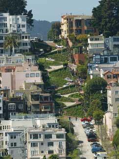 Perhaps this preservation of the human scale also has to do with the city?EUR??,,????'???s unique topography. It rests on a penninsula bordered by the Pacific Coast on the west, the bay on the north and east and rolling hills to the south. Over 40 hills divide the city into pockets of neighborhoods. On clear days, views of the surrounding nature are inescapable. Most significantly, the fast moving fog, which rolls into the hills and lifts just as unexpectedly, emblematizes the spirit of nature with its precariousness, its beauty, and its force. It is said that the city has a special relationship with the different hours of the day. When the fog lifts, it reveals stunning views of the Golden Gate Bridge, Twin Peaks, Coit Tower and all of the lines and angles that make up the city?EUR??,,????'???s amalgam of eclectic architecture.