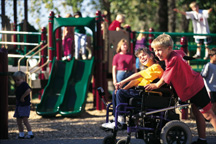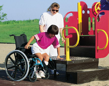 Twenty years ago few disabled children would have even contemplated playing with their able-bodied peers on a playground. The first problem was one of access: There was often no way for a child using a wheelchair, walker or crutches to get on or move through the playstructure. Back then there were no transfer modules, and few ramps. Loose-fill materials - pea gravel, wood chips or sand - encircled playstructures like moats, making wheelchair access impossible. And even when a playstructure did include a ramp, there was often no route of access from the nearest parking lot or sidewalk to the play area itself. To disabled children playgrounds might as well have been on the moon. For them, playground recreation involved watching others, hearing their laughs and getting a glimpse of their games, yet remaining detached and alone. The next issue was one of inclusion. Assuming that a child with disabilities could safely negotiate his or her way to the playstructure, there was often precious little for them to do once they got there. Designers featured many elevated play events that often challenged the able-bodied, but left out those with disabilities: horizontal ladders and rings set high above the ground, out-of-reach track rides and towering slides. Even the ground-level events often required strength and agility that many disabled children did not possess. Well, a lot has changed since the 1980s, but the work is far from done. In September 2002 the Access Board published Accessibility Guidelines for play areas under the Americans with Disabilities Act (ADA). These guidelines established minimum standards for all newly built or altered play areas, and indicated not only what is to be accessible, but also how to achieve it. Requirements for access to both elevated and ground level play events were spelled out in detail, and, for the first time, children with disabilities are being given access to the world of play at thousands of schools, parks and child care centers. It is anticipated that the Department of Justice will adopt these guidelines as enforceable standards within the next two years. The impact that these standards will have on children with disabilities is profound. A path to the playground has been cleared for them and many of the barriers have been surmounted. But, now that access has been defined, the questions of inclusiveness become even more important: What will children with disabilities do on the playground? With whom will they play? Will they be in the center of the action or on the periphery of play? One person who has grappled successfully with the issues of access and inclusiveness is Mark White, environmental and risk manager for Lee?EUR??,,????'???s Summit School District 7 in Lee?EUR??,,????'???s Summit, Missouri. During the summer of 2000 White began tracking the number and type of playground injuries that were occurring at the 13 elementary schools in his district, and was shocked to find that they were averaging 25 injuries per month that required a visit to a medial professional. Determined to do something about this he formed a Playground Safety Initiative team, which consisted of principals, teachers, playground supervisors, nurses and parents. He asked for their help in assessing the safety issues and product concerns on each of the playgrounds in the district. Some of their findings were not surprising: much of the playground equipment was old and not in compliance with safety regulations, many injuries were occurring when older kids and younger children were playing together on the same playstructures, and the majority of injuries were unrelated to the playstructures at all. But one of the PSI team?EUR??,,????'???s observations startled him: none of the school playgrounds were accessible to any significant extent by children with disabilities. ?EUR??,,????'??That is when my entire attitude towards playgrounds changed,?EUR??,,????'?? said White. ?EUR??,,????'??Suddenly I began seeing the playground through the eyes of a child who was physically or mentally disabled. It disturbed me to see that they were excluded from the center of play, and often even prevented from getting to the playstructure itself.?EUR??,,????'?? Soon thereafter he became the ADA transition plan coordinator for the school district and that?EUR??,,????'???s when his mission expanded from one of playground safety to creating playgrounds that were universally accessible and inclusive. Said White, ?EUR??,,????'??I wanted our playgrounds to go beyond the minimum requirements set by the Access Board and become models for how playgrounds should be done.?EUR??,,????'?? White?EUR??,,????'???s first step in this direction was to install a revolutionary, fully inclusive play event at Cedar Creek Elementary School. ?EUR??,,????'??I first heard about Sway Fun in January 2002 from Perry Lawrence, the Missouri representative for Landscape Structures. He had just come from the company?EUR??,,????'???s annual sales meeting and did not even have a photograph of the (Continued from page 54) product - that?EUR??,,????'???s how new it was - but he described Sway Fun to me as a play event that for the first time allowed children with disabilities to not only be in the middle of play, but to lead it. When he said that this single event could accommodate up to 12 kids, including two in wheelchairs, I knew I had to learn more. According to Steve King, FASLA, chairman of Landscape Structures and chief designer of its products, Sway Fun allows playground designers to go beyond the issue of accessibility and step into the realm of truly inclusive play. ?EUR??,,????'??Sway Fun was designed specifically for children with disabilities,?EUR??,,????'?? said King. ?EUR??,,????'??It lets them experience a gliding, swaying motion along with a big group of their friends. Producing Sway Fun has shown us that there?EUR??,,????'???s a strong need for fun events that let children with disabilities lead the play.?EUR??,,????'?? 
