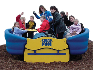 ?EUR??,,????'??I first heard about Sway Fun in January 2002 from Perry Lawrence, the Missouri representative for Landscape Structures. He had just come from the company?EUR??,,????'???s annual sales meeting and did not even have a photograph of the product – that?EUR??,,????'???s how new it was – but he described Sway Fun to me as a play event that for the first time allowed children with disabilities to not only be in the middle of play, but to lead it. When he said that this single event could accommodate up to 12 kids, including two in wheelchairs, I knew I had to learn more.