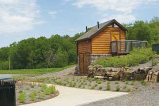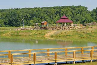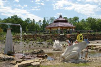 The park has an abundance of Native American artifacts on site, not surprising considering the location is at the juncture of two major creeks used by the Mississippian Indians for trading and travel. The Mississippians inhabited the land 10,000 years ago. As with all Native American tribes, frontier settlers began to settle on their lands and displace them. During the design of the park, special attention was paid to this historical heritage. The design team wanted to preserve and enhance the landscape, but also telling the stories of the land and the people who had lived there.