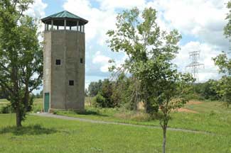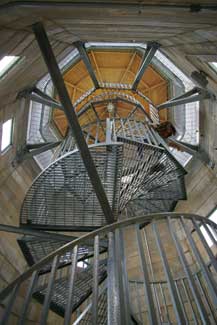 The restored grain silo has poured-in-place concrete walls. Existing portals were closed and new windows relocated to provide ventilation and views. The spiral staircase and observation platform are custom fabricated galvanized steel. The standing seam metal roof and screens were custom fit to allow for an observation deck at the top of the silo for expansive views of the park landscape.