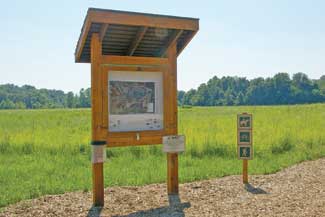 Areas dedicated to the preservation of a rare sedge meadow, wooded wetlands and mesic prairie were created. Interpretive opportunities were programmed to educate park users about the Mississippian Indians who once inhabited the land and about the family who had farmed the property for generations. Finally, a supportive infrastructure was necessary to keep the park functioning, including a maintenance facility, compostable toilets, parking, a bridge crossing and a formal entrance ?EUR??,,????'?????<?announcing?EUR??,,????'?????<? the park.