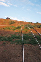 Meeting plant requirements and managing irrigation systems can be a difficult task under normal circumstances. When slope plantings are involved, applying water efficiently and effectively can be extremely challenging. Several tactics can be utilized to help you deal with these ups and downs. Following are ten design and product application tips for effective slope irrigation. Select an irrigation timer that controls your water applications. Choose an irrigation timer with multiple start times, with at least four start times per program. Determine how long a station can be on before run-off occurs. Divide the run time necessary to meet the plant water requirements by this factor. If necessary, use each start time and reduce run-off that results from running valve stations too long. Even better, use an advanced controller with a feature that will allow the total irrigation run time to be simply split into usable cycles. This will help to minimize runoff. Use master valves and flow sensing equipment as an insurance policy. It?EUR??,,????'???s important to use a master valve when irrigating slopes. Locate the master valve to reduce the length of constantly pressurized mainline around the slope, and before the zone valves. A master valve only turns on when the system is running. A master valve prevents the mainline from being pressurized unless the irrigation controller initiates an irrigation cycle. Flow sensing equipment can detect excessively high flows when a problem occurs. If calibrated properly, the flow sensing equipment will work in conjunction with the master valve to shut the system down should a pipe break or sprinkler become damaged. Use reverse-flow valves to reduce problems associated with a worn diaphragm. The inner workings of a reverse flow valve will prevent water from continuously flowing if the diaphragm is torn. In other words, it is effective because it will fail in the ?EUR??,,????'??off?EUR??,,????'?? position. A valve without a reverse flow feature can fail in the open position, run continuously and erode the slope until it is repaired. Use pressure compensating/regulating devices to get the best sprinkler coverage. When used in accordance with the manufacturer?EUR??,,????'???s specifications, pressure-regulating modules can be installed on valves to adjust the operating pressure of sprinkler heads down stream.Sprinkler nozzles that provide the optimum pressure distribute water as efficiently and uniformly as possible. Sprinkler nozzles operating at pressures significantly above or below the optimum usually perform poorly and, as a result, plant material suffers. Built-in pressure compensating or regulating devices provide the best option since the optimum operating pressure is delivered directly to each sprinkler head. This will eliminate misting caused by high pressures, reduce water drift due to wind, and give the water droplets the best chance of getting to where they are designed to go. Adjust the distance between lateral lines to compensate for the slope. On a 2:1 slope, a properly adjusted sprinkler will throw about 80 percent of its radius above the head and 120 percent of its radius below the head. This concept is difficult for many people to understand because, on the site plan of an irrigation project, slopes appear to cover less ground than they actually do, and the effect of the slope cannot be accurately portrayed. Therefore, sprinklers can be spaced consistently along the lateral, but the distance between bottom and middle laterals should be reduced and moved up toward the top of the slope to obtain head-to-head coverage and compensate for the true effects of the slope. Space lateral lines across the slope rather than with the slope. When installing the lateral lines, make sure they follow the contours of the slope. If lateral lines are incorrectly installed from the top to the bottom of a slope, the pressure differential resulting from the elevation change could create severely uneven pressures at each of the sprinkler nozzles. This will cause irregular water distribution. Additionally, the higher pressures at the bottom could shorten the longevity of the pipes and sprinklers. Limit sprinkler heads on a valve zone to decrease potential damage. As you add more sprinkler heads to a zone, the size of the delivery system components and infrastructure will increase. In this case, bigger also means that more water will be available to cause damage in the event that something on a system breaks. Consequently, large zones are not recommended unless other safeguards are included to circumvent potential problems. Limit sprinkler heads on a valve zone to increase performance. Tailor the irrigation system to meet the specific water requirements of the slope areas. Separate zones to apply water to slope sections with considerably different plant material, as well as different exposures to sun, wind and other climatic influences. If you mix zones together, it will be hard to keep plant material healthy because one side of the slope will get too much or too little water. Place part-circle sprinklers on separate zones or use matched precipitation rate nozzle packages. Uniform water distribution is critical for effective slope irrigation. To achieve this, separate part-circle sprinklers from full-circle sprinklers, and then adjust the station run times. An easier method is to use nozzle sets that are specifically designed to create consistent precipitation rates, despite the various arcs and radii. Using matched precipitation rate nozzles on the same valve system reduces the chance that your system will put down too much water with some heads and not enough from others. This will help to diminish the potential for severe soil erosion. Install sprinklers with check valves to contain erosion. When used properly, a check valve will contain the unpressurized water in the lateral lines after the zone valve has completed its watering cycle (if the valve is located at a hig
