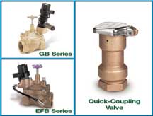 In an irrigation system, there are two basic types of valves: shut-off valves and sprinkler valves. Shut-off valves (?EUR??,,????'??gate valves?EUR??,,????'?? or ?EUR??,,????'??ball valves?EUR??,,????'??) are used in a continuous pressure main line to temporarily turn the water off to the entire system or a section of the system. Sprinkler valves (manual or automatic) are used to deliver the water from the continuous pressure main line to the sprinklers. When the term ?EUR??,,????'??valve?EUR??,,????'?? is used alone, it usually refers to an automatic control valve. Gate valves have a wheel type handle, and several turns of the handle are required to turn off the flow of water. Gate valves are most commonly used on mainline pipes with high water pressure or high water flow. Because several turns are required, they are easier to turn off and the potential for damage caused by water hammer is reduced. Gate valves have a brass-to-brass seat, which means that they may eventually lose their secure seal. For this reason, gate valves are not recommended for frequent use. Ball valves have a single arm or lever that requires one-quarter turn to turn on or off. This single action is convenient, but caution should be used and the valve should not be turned on or off too quickly, because damage to the system from water hammer could result. Ball valves have resilient seats that keep a seal longer than brass-to-brass seats, making ball valves a better choice than gate valves where frequent use is expected. Among sprinkler valves, manual control valves are not as common as they once were. The manually controlled sprinkler system requires an operator to time the irrigation of each zone, and to turn valves on and off at the proper time. The operator must be present the entire time the system is operating. Obviously, this type of system does not have the convenience of the automatic system. Automatic control valves are used in conjunction with automatic controllers or timers, and are a much more convenient way to deliver water to the turf. Because these valves can be more precisely controlled, an automatic system allows the sports turf manager to efficiently schedule the delivery of the right amount of water to each zone. There are many types of automatic control valves. On systems not connected directly to city water systems, choose a valve with an inexpensive self-cleaning filtering mechanism. Because of the possibility of higher surge pressure in a large turf system, it is recommended that the valve be able to withstand pressures up to 200 psi. A pressure regulator can be installed at the beginning of the system, but with the long main line and the potential for high friction loss, it is generally better to have an automatic control valve with a built-in pressure regulator and control the pressure right at the valve. Placement of the valves should be planned with maintenance and safety in mind. Automatic control valves are generally installed in groups, or manifolds, and placed underground in a plastic or concrete valve box. If the valves will be near the field of play, use plastic. The manifolds should be built with plenty of room between valves. The distance between valves is dependent on the size of the valve box; for most standard size boxes, two or three 1?EUR??,,????'?? valves can be installed in a valve box, while valves larger than 1?EUR??,,????'?? are usually installed one valve per box.