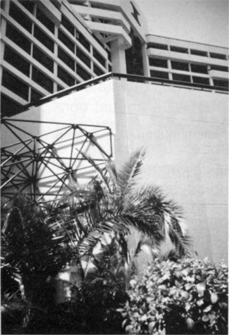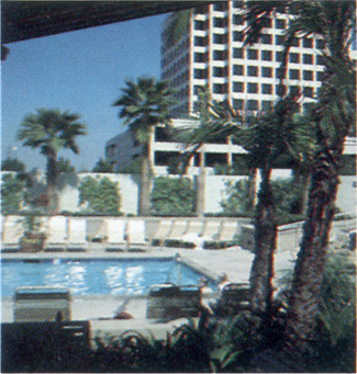 According to the architects, the developer of the hotel also had a number of office buildings in the area and insisted that the hotel “match” the other buildings which were built with travertine cladding. “But cost entered into the picture,” according to Tom Black, AIA, of the architectural firm of Howard, Needles, Tammen & Bergendoff of Los Angeles.
