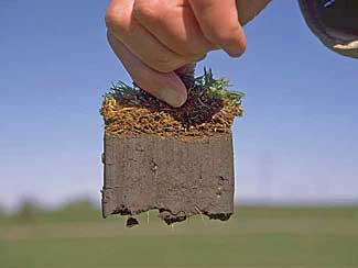 Plugging can be used for those grasses such as bermudagrass, zoysiagrass and centipedegrass that spread laterally. Place plugs on either 6-inch or 12-inch centers, depending on the desired establishment speed. Use a plugging device to remove plugs of soil from bare areas and switch them with plugs collected from healthy areas.