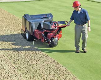 ?EUR??,,????'???? Thin the turf, especially hybrid bermudagrass, with a power rake to improve seed placement near the soil. Centipedegrass and zoysiagrass are slow to recover from injury, so only lightly rake the surface on these lawns. Remove the clippings and raised thatch.