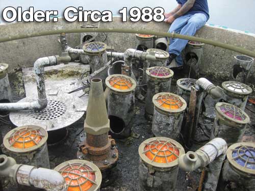 While the world around the fountain changed dramatically, the fountain remained relatively unchanged until a 1988 lighting retrofit of ?EUR??,,????'??cutting edge?EUR??,,????'?? Strand dimmers and lighting controls, along with a new set of 1,000-watt quartz light fixtures.