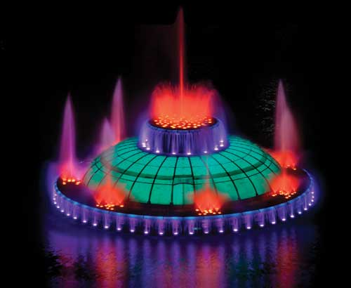 Lighting Design Freeport specified more than 200 RGB submersible LED fixtures. The LEDs produce vivid color illumination at a fraction of the former wattage usage, significantly lowering the cost of operation.