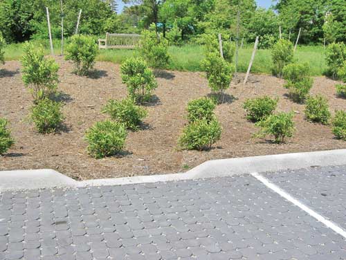 Since the new school building is aiming toward a LEED certification, considerations for the park were made early in design to speak toward environmental awareness and responsibility. Porous pavers were used for the parking stalls, rain gardens were implemented to treat and control runoff from the parking and the ball fields, and an almost exclusive use of native plant materials were specified for the park.