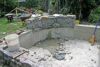 After the pond was lined with rocks and gravel, and filled with water, and the heavy equipment was gone, we carved out the bog areas on the pond?EUR??,,????'?????<???????????????????????(R)?EUR??,,????'????s outer perimeter. These plant pockets were excavated only two inches below water level.