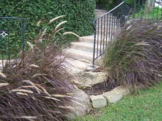 The lot for this home is pie-shaped, narrow at the front, wide at the back over looking the water. We started with a very nice, but minimal front yard and a streetscape, in line with the wishes of the developer. Everything from the outside edge of the home needed designing, access to the Grand Stairway at the front of the home while offering a little privacy from the street, and access to both sets of garages, left and right of the front door. Most challenging of all was to provide access from a fabulous breezeway/ porte-cochere, down to the water and a pool that the client wanted us to design, and to create usable space on the remaining portions of the property, which has an approximately a 30 percent slope from the home down to the water.