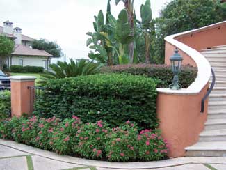 The design for this residence in Kemah, Texas is meant to evoke images of a 300-year-old Italian Country Village. Through the extensive use of plant materials, and elaborate hardscapes, the design wishes of the homeowners were achieved.