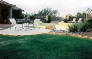 Since the area being lit bordered grass we used a heavy-duty 20 gauge, galvanized steel landscape edging that has been specifically designed to encase and protect Light Rope from maintenance equipment (lawn mowers, trimmers, etc.) and the suns damaging UV rays. Not wanting to detract from the natural beauty of the indigenous Southern Arizona desert backdrop, an unobtrusive powder painted brown edging with clear lights was used to set the stage for their own desert oasis.