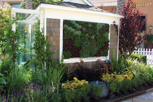 Architect Ryan Ghere offered a relatively new concept of “The Living Wall.” Lush succulents planted within plastic panels were mounted vertically on one of the playhouse exterior walls creating an aesthetically pleasing view from all sides.