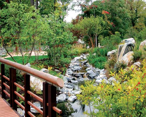 For the three-acre property in northwest D.C. featuring the work of Korean Architect Soon Gun Kim, LAI developed a landscape master plan, water falls and plant materials specific to the Korean landscape: chestnuts, persimmons and Korean boxwoods. Historic sculptural stone from Korea proliferates and the courtyard fountain features monolithic prehistoric stone. Since the start of the design in 1996, the U.S. Army Corps of Engineers discovered contaminated soil and WWI munitions on the grounds. Site excavation removed many mature trees and destroyed much of the garden. In 2000, LAI prepared an extensive garden restoration plan, including an arbor, pavilion and rock outcroppings. 2002 Merit Award Potamac/Maryland ASLA Chapters