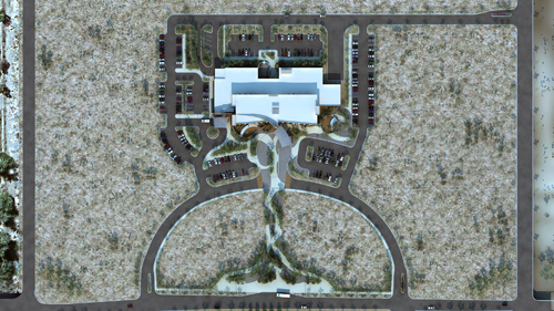 Norris Design provided 3D-visualization and animation, landscape, hardscape and irrigation design for the proposed West Valley Medical Facility operated by Dignity Health. The project boasts many intimate spaces, including a Meditation Garden and Healing Garden, places for solitude, reflection and an inviting campus for patients and visitors. The new hospital grounds are elegantly designed by blending a variety of forms, textures, colors and aromas of local native plantings with distinctive hardscapes and materials. The garden features low water use plants and a passive rainwater harvesting system.