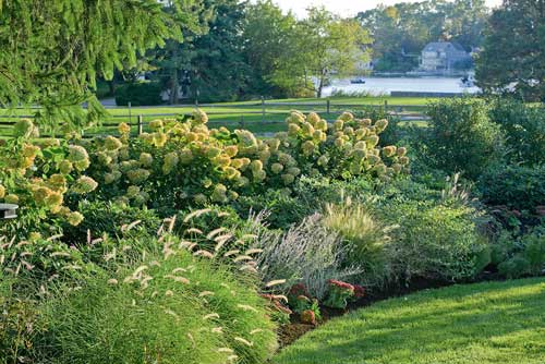 Artemis Landscape Architects is an award winning design studio located in historic Bijou Square in downtown Bridgeport, Conn., and provides design, management and implementation services that connect people with their natural surroundings. Principal and founder Tara Vincenta brings 30 years of experience in designing diverse landscapes, including environmental and regional planning studies, multi-family housing, corporate institutional and private residential work. Country Estate, New Canaan, Conn. The landscape program for this grand-shingle style home in New Canaan, Conn., defines the homeowner's experience from the entry gates and courtyard to the entertaining areas and gardens within. Large elegant bluestone steps lead to the home's main entrance from the parking courtyard, defined by low stone walls flanked by simple plantings of boxwood, white hydrangea and clipped flowering pear trees. A formal herb garden off the kitchen creates a transition to the rear yard outdoor living and entertaining area. A lower level includes an al fresco dining terrace, service bar and firepit gathering area on one end of the house. This connects to a more formal entertaining terrace where a water feature, doubling as a spa, becomes a focal point from the home's living room. Wide steps lead to a lawn area where the family's children play, and transitions to a pool area that takes advantage of sweeping views of the entire property.
