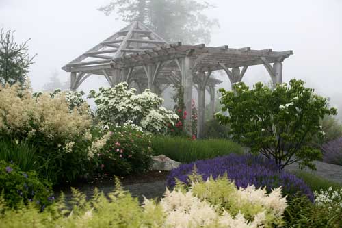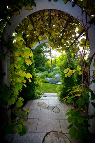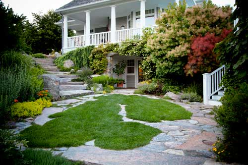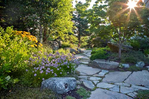 Bruce John Riddell Landscape Architect, LLC is a one-person landscape architectural firm located in Boothbay, Maine with a satellite office in Bar Harbor, Maine. Riddell's focus is on horticulture, use of native plants, stonework, custom site furnishings and what he calls "LandArt," the integration of art into the landscape. For nearly 30 years he has worked on numerous public and private gardens in a diversity of scales that have garnered regional and national recognition for design excellence. Coastal Maine Botanical Gardens, Boothbay Braided paving contrasts man-made and natural elements, splicing the built and natural worlds together. Photo by William S. Brehm Bruce John Riddell designed signature garden planting plans, custom stone benches, waterfalls, and unique stonework at the Coastal Maine Botanical Gardens in Boothbay, Maine. The design includes a Japanese-inspired Vayo Meditation Garden with a hillside amphitheater with large quarried stone. There are also hillside, entry and rose gardens, plus a great lawn and ceremonial and event lawns. Bruce designed and helped construct a 20-foot picturesque waterfall made of a series of large slab granite basins for the Giles Rhododendron Garden. The falls plunge into a reflecting pool. Photo by William S. Brehm Riddell designed the tapestry of plantings that surround the rose garden arbor. Photo by William S. Brehm Photo by Robert Mitchell Photo by Bruce John Riddell Photo by William Brehm The Wright Garden, Bangor Maine A natural-edged drilled boulder spills water gently onto a carved stone sluice, over a hand-forged bronze leaf into a pebble-lined basin. Photos by William S. Brehm This small backyard was designed for relaxation, self-reflection and immersion with nature. Native plants and groundcovers artfully mix with traditional Victorian plantings to create a picturesque garden, balancing beauty and formality with a wild and natural sense of place. This residential garden is approached through a vaulted grape arbor designed by Bruce John Riddell. Photo by William S. Brehm Photo by Bruce John Riddell Photo by Bruce John Riddell Patriot's Point - Bar Harbor, Maine Photo by William S. Brehm This idyllic coastal Maine garden combines stepping stone paths, stone slabs and boulders with formal entrance gardens, a sweeping great lawn, naturalized wildflower meadow, cultivated apple orchard, naturalistic ledge gardens and moss and fern beds. Photo by William S. Brehm Photo by William S. Brehm Photo by William S. Brehm Photo by William S. Brehm