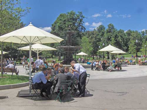 Located on the Northend Waterfront and operating nationally, Pressley Associates is a full-service landscape architecture firm. It currently has a staff of 12 landscape architects and designers and support staff from diverse and varied backgrounds, who together produce thoughtful and innovative solutions to design and planning projects. the firm is recognized for urban design, campus design, parks and open spaces, and residential landscapes both historic and contemporary. Several individuals in the firm are LEED-certified. Professional staff include president William Pressley, FASLA and principal Marion Pressley, FASLA. Brewer Fountain Plaza, Boston The plaza stands at the foot of the hill to the Massachusetts State House in Boston Common, one of the nation's oldest public parks and highly used by residents of Boston and visitors. The historic fountain is a bronze casting of a sculpture created for the 1855 World's Fair in Paris. The fountain was donated to the city by Beacon Hill merchant, Gardner Brewer and installed on the Common near Beacon Street in 1868. The firm prepared a series of conceptual design alternatives with plans, sections, cost estimates and illustrative sketches. The design alternatives were aimed at revitalizing the plaza as an oasis from busy downtown Boston while maintaining the ability to accommodate large gatherings, serve as a free speech zone and improve seating opportunities.
