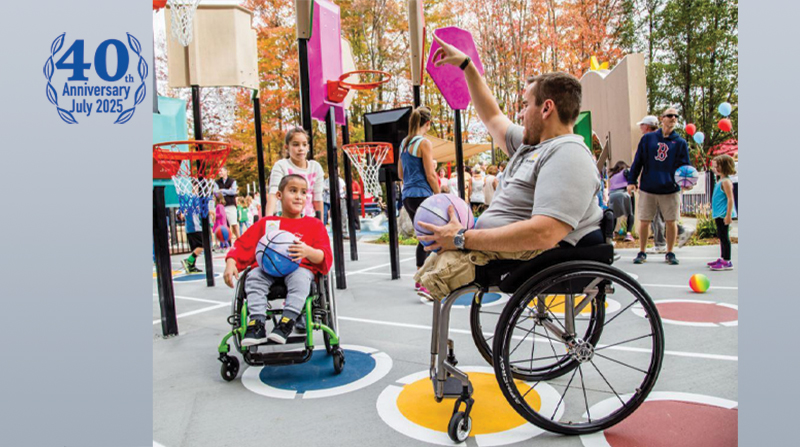 An advertiser of LASN in the early 2000s, Bankshot Sports provides grants for communities, schools, and other organizations to build accessible Bankshot Playcourts like the one seen here.
