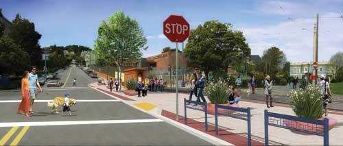 Royston Hanamoto Alley & Abey’s involvement in the project began when members of its staff, who lived in the neighborhood, participated in DTNA’s transportation subcommittee. Recognizing that the project would benefit from more substantial support and resources from a design firm, RHAA provided services to the DTNA through its 1 percent pro bono design program. Each year the firm donates 1 percent of its billable design hours to various projects.