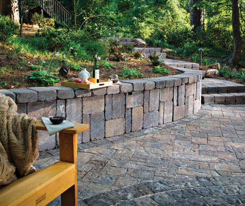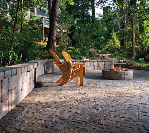 Installation Due to the hilly landscape of the backyard, a retaining wall was designed using Weston Wall in a Saddle Creek color blend to separate the downward slope from the flat patio area. The wall served double duty as a seating wall to accommodate large get-togethers. After selecting Lafitt pavers in both Brasstown and Belgian Stone color blends for the patio and walkways, Bergerac pavers in the Carriage House blend for the fire feature and Weston Wall block in a Saddle Creek blend, it was time to get to work. After about three weeks of work, the Browns' new outdoor retreat was finished. The girls' new two-story treehouse came complete with a trampoline station, tire swing, zip line, rope ladder and more. Todd and Amy also got the outdoor space of their dreams, with a patio perfect for relaxing and watching the girls play. "We couldn't be more excited about our new outdoor living space, and neither could our girls," Todd said. "They will definitely be putting the treehouse and zip line to good use, and you can bet that there will be many evenings spent around the fire pit roasting marshmallows!" A clip from the Elbow Room episode featuring this project can be seen at: www.hgtv.com/video/the-worlds-best-treehouse-video/index.html.
