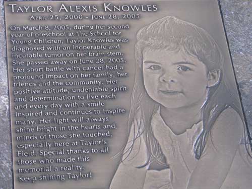 On June 4th 2009, four years after the death of Taylor Knowles, Taylor?EUR??,,????'?????<???EUR?s Field at Beach Park was opened with a gala celebration of her life and spirit.