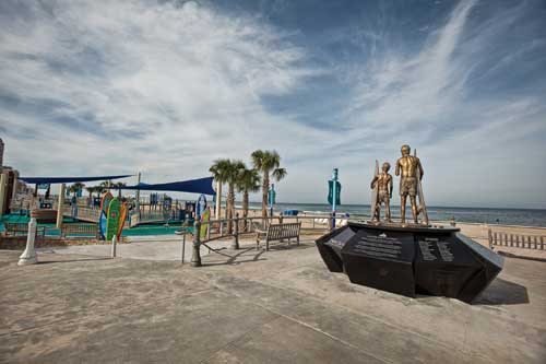The final design element is truly the piece that ties the project together. Overlooking this well-known surf spot at 1st Street is a statue called “Anticipation.” It depicts a “grommet” being mentored on the challenges they are about to face in the ocean. Modeled after Josh and his younger brother, this statue serves as a reminder of what challenges people face on a daily basis that are only amplified when living with a disability.