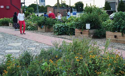 The neighborhoods south of downtown Columbus have begun a large-scale, beautification initiative. Aetna Building Maintenance (ABM), a janitorial company committed to sustainability and the betterment of their community, is located in the heart of these neighborhoods. ABM approached Ohio State University's student chapter of ASLA to design and build the community garden. The students saw this as an opportunity to help ABM engage and give back to their community while gaining real world experience. The kickoff meeting prescribed the community garden as a multifunctional space that showcased sustainability, gave people access to their own fresh produce, and provided a place for community interaction and respite. The shade pavilion provides a nice space for employees from the surrounding businesses to eat their lunch and engage with the community. A reclaimed concrete patio used for community gathering space was constructed from the gravel of Aetna Building Maintenance's roof and from concrete remnants of the historic Olentangy Amusement Park (1880 - 1939).