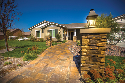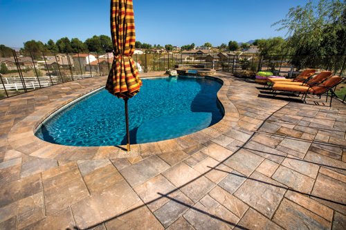 Go Pavers is a small, family-owned company that provides hardscape installation services in Southern California, including this recently completed project at a home in Santa Clarita. For this project, they used pavers from Belgard, an Interlocking Concrete Pavement Institute, or ICPI, certified pavers manufacturer. The project was done from scratch, meaning the home had just been built and the front and backyard areas were completely dirt. The homeowners hired a pool contractor to construct a swimming pool, so Go Pavers did what they call a "demo pull off." This involved demolishing and excavating dirt from the property to make it so the pool contractor could install the pool. Go Pavers was then able to complete the hardscaping. The hardscape installation, not including the demo pull off, took about three weeks.
