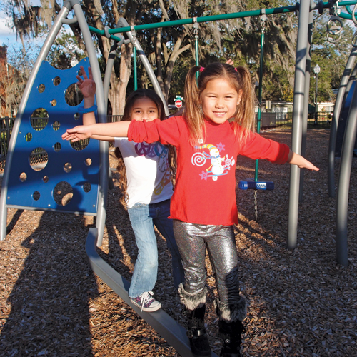 When a corner parcel of land adjacent to Colonialtown became available, the city of Orlando wasted no time in buying it. And when the playground was ready to be upgraded, that parcel was added to the site, expanding its size. The playground sits next to the Colonialtown Neighborhood Center and across the street from Ferncreek Elementary School. Single-family homes and small businesses tucked inside renovated houses surround the park as well. As many as 75 children in grades K-5 fill the playground every day after school and during school breaks. The majority of these kids attend Ferncreek Elementary, where 84 percent of the students are on a free or reduced lunch program and 20 percent are homeless. The park is also heavily used in the mornings and early evenings. A neighborhood association was instrumental in the design, and its members met with city staff many times to provide input and advice on Colonialtown's new look.