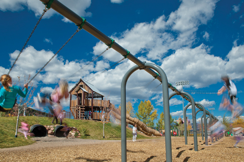 Connect One drew on the environment of the Roaring Fork Valley to create a playground that was inclusive of all the ages and abilities at the school. The design celebrates the Rocky Mountain environment with playful interpretations of the geologic past, mining history and outdoor sports including climbing, sledding and even off road driving. While Thornely took great care to ensure the site's safety, it was the design side that proved most satisfying. Thornely chose to incorporate elements specific to the Aspen environment. Since (playground equipment) catalogs don't include mining shacks and history of the earth walkways, Thornely had to design them himself. The design facilitates all types of play while helping children explore social and environmental concepts. Many of the elements included were built or provided by the community to maximize the financial savings to the school. It allowed them to construct a more exciting and engaging space for the children. Given the magnitude of the grading and drainage the majority of the work was executed by earth moving contractors. Volunteers helped with the planting of shrubs, grasses and spreading of engineered wood fiber. Many other helpful hands came together to help bring this project to life including the PTO, Columbine Landscaping, as well as parent and teacher volunteers.