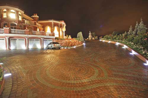 Glitter was sprinkled over the driveway after the pavers were installed, followed by the contractor applying Techniseal???????(R)????, a microporous emulsion that is specially designed to protect porous materials such as pavers. This product acts as a water repellent and makes cleaning the pavers easier.