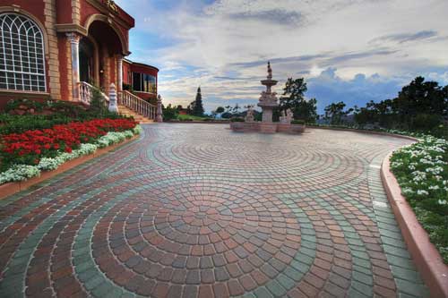 Laying the Pavers Don Troutman, the landscaping contractor, built the 5,777 square foot driveway using a total of thirty-three Plaza Stone IV Circle Packs in Antique Terra Cotta by Pavestone. The circles varied in size starting from 8?EUR??,,????'?????<???EUR?-9?EUR??,,????'?????<? up to 18?EUR??,,????'?????<???EUR?-5?EUR??,,????'?????<?, so it was critical that the layout of each circle be precise when designing this driveway. Pavestone created a custom Willow Green colored paver for the banding that traces around all of the circles and ends at the entrance.