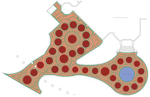 Contreras created the intricate circle pattern in CAD with the continuous green ribbon tracing around each circle. ?EUR??,,????'?????<?It?EUR??,,????'?????<???EUR?s pretty neat to see the transition from plan to actual build. The trick was taking the product and placing it in CAD exactly and connecting the circles at their tangent points, whereby the outer edges of the circles would meet with the colored band making the connection between the two,?EUR??,,????'?????<? said Contreras.