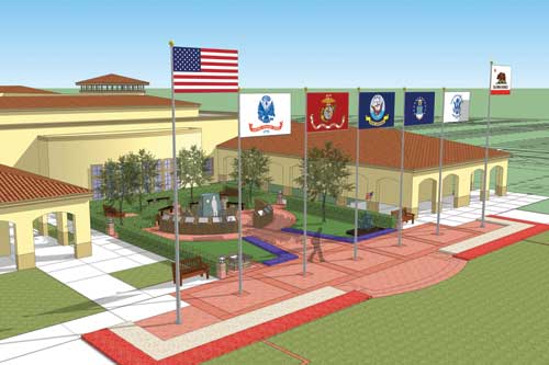 Robert Mueting, principal landscape architect at RJM Design Group, Inc. and George Wiens, principal architect at WLC Architects, represented the two firms who donated their services for the Veterans/Armed Forces Reflection Area known as Freedom Courtyard at Central Park in Rancho Cucamonga, California. The conceptual plan received a round of applause, at the city council meeting in fall 2010. The master plan is based on residents?EUR??,,????'?????<???EUR? ideas generated at a June workshop. The preliminary design for the future Veterans/Armed Forces Reflection Area project was unveiled at the city?EUR??,,????'?????<???EUR?s 2010 Veterans Day celebration at Central Park.