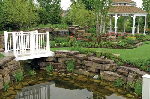 In 2010, the Bridges of Poplar Creek Country Club in Hoffman Estates, Illinois was poised to redefine itself as a premier venue for outdoor weddings and banquets after a multimillion-dollar renovation of the 35-year-old Chicago-area golf course. Proposed elements for the new venue included a waterfall and pond, a gazebo, gardens and space for seating. In discussions with the golf course management, the design theme that kept coming up was “natural.”