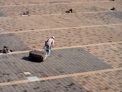 The plaza paving was constructed of approximately 20,000 square feet of Eco-Priora?EUR??,,????'?????????????? permeable unit pavers manufactured by Unilock???????(R)????. One challenge was to break up the massive pavement requirement while creating a sense of scale incorporating rhythm and geometry. ?EUR??,,????'?????<?Folding in?EUR??,,????'?????<???EUR? the north pavements edges made for a more intimate approach to the new expanse of turf area.