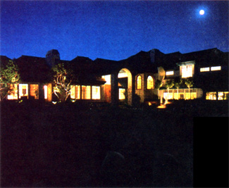 Because the house would be used extensively for evening entertainment and showings, landscape lighting was an extremely important element of the design. Consultants at Nightscaping low-voltage lighting, worked closely with the project designer, Jim Ripley, to achieve different levels of lighting. Lighting areas were individually zoned at eight different stations to enable the owner to change the lighting and accommodate the different functions anticipated and to highlight key elements, water features, specimen trees and use areas. The final adjustments were made by Ripley in full evening attire during a cocktail party being held the evening of the final judging!