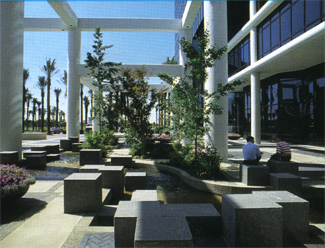 POD?EUR??,,????'???s Landscape Master Plan & Design served to integrate the building complex, which is located on two separate parcels of land divided by a major avenue. A grove of palm trees creates a strong axis, which ties the two parcels together. Of additional special interest are the sculptural water elements incorporated into the plaza and courtyards designed by POD.