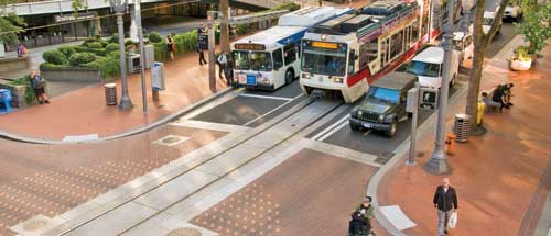 The Portland Mall, as conceived by the team of SOM/Halprin in 1976, was an ambitious urban improvement designed to address dwindling investment, a desire to re-define Portland's civic form, to reduce congestion and to become the region's transit nexus. The Portland Mall Revitalization Project provided: 58 renovated or re-built downtown blocks and intersections; enhanced sidewalks with renovated or new amenities including 45 new transit shelters; new and existing public art; a continuous travel lane for autos and bikes; and limited parking and loading zones for businesses.