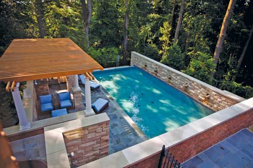 A Must Have Feature Another ?EUR??,,????'??room?EUR??,,????'?? in this outdoor space houses the zero-edge swimming pool, which was high on the homeowner?EUR??,,????'???s wish list. ?EUR??,,????'??The client wanted a zero-edge pool so we gave them a pool to fit the space,?EUR??,,????'?? James Gray of Russell Design. ?EUR??,,????'??The pool is five feet deep, which fits their needs. It is a nice piece in the overall design as it gives a reflective quality to the space.?EUR??,,????'??