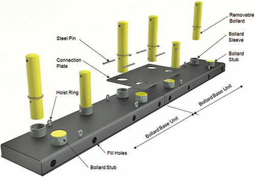 The unique advantage of this modular bollard system is the ease of installation, whether it's a temporary security need or long term. The manufacturer says the reusable bollards and plates last 25 years or more. Applications for the system could include temporary road closings, farmers' markets, street fairs or stadium events, to name a few.