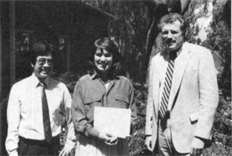 Bruce K. Wilson, President of Environmental Care, Inc., presented the Environmental Industries, Inc. 1987-1988 Scholarship Award to Kim Diane Baenisch recently. The $1,000 was presented at a ceremony at the corporate offices of the SWA Group, landscape architects in Sausalito, California where Kim is beginning her career in landscape architecture. Also in attendance at the presentation was Noni Mendoza, Principal with the SWA Group.