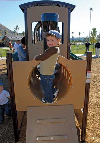 In the late 1950s, an engineer named Joseph Hunter laid railroad track for a small-gauge steam engine on land he owned in Riverside, Calif. When Hunter died in 1965, the land was donated to the city for park purposes, and local train enthusiasts partnered with the city to maintain the tracks, forming a volunteer group called the Riverside Live Steamers in 1966. Over the years, Hunter Hobby became well known for steam train rides; however, rundown site amenities, including unpaved parking lots, inadequate public restrooms and an old ball field attracted few users. Outdated irrigation and storm drain systems left areas of the park flooded at times during the winter. After years of intensive use by the community, the 32-acre Hunter Hobby Park was in need of significant improvements.